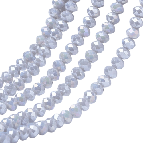 AB coating is an iridescent coating that adds a subtle shimmer to the beads. In this case, only half the bead is coated.