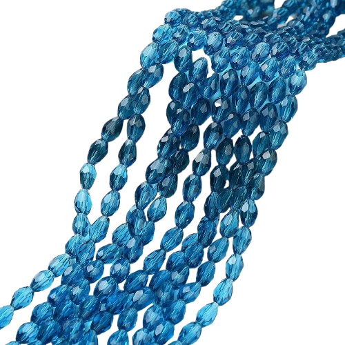 Facetted dark turquoise teardrop glass beads