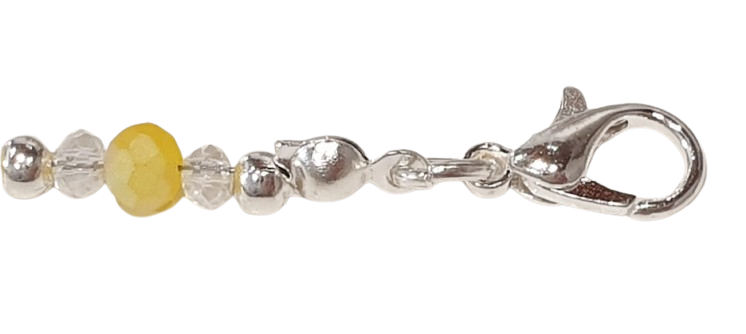 When you are ready to finish the piece of jewellery, thread on the callot first, with the opening facing the end of the thread, followed by the crimp. Crimp the crimp bead as close to the callot as possible and trim off the excess thread (make sure that the crimp is secure before cutting off the excess thread). Add the clasp and jump ring on each end of the necklace/bracelet.