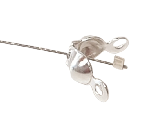 Callots have aesthetic as well as practical uses. They give your jewellery a high-quality finished look without the chance of thread ends poking out between beads as well as being useful when making multi strand necklaces and bracelets. Like most findings, callots come in a range of metal colours, shapes and sizes. A range of different callot styles are shown in the pictures.